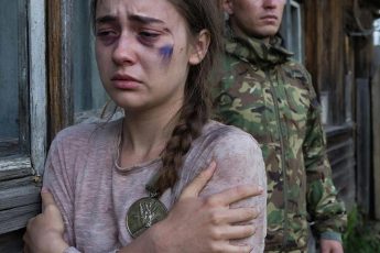 Женщина молча стояла, опустив голову, а охранник продолжал издеваться.