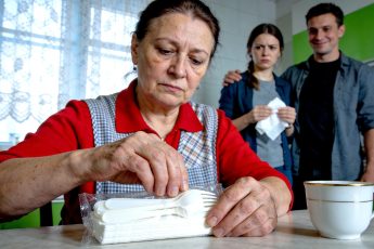 Лена, сидевшая рядом, положила руку ей на плечо, призывая к спокойствию.