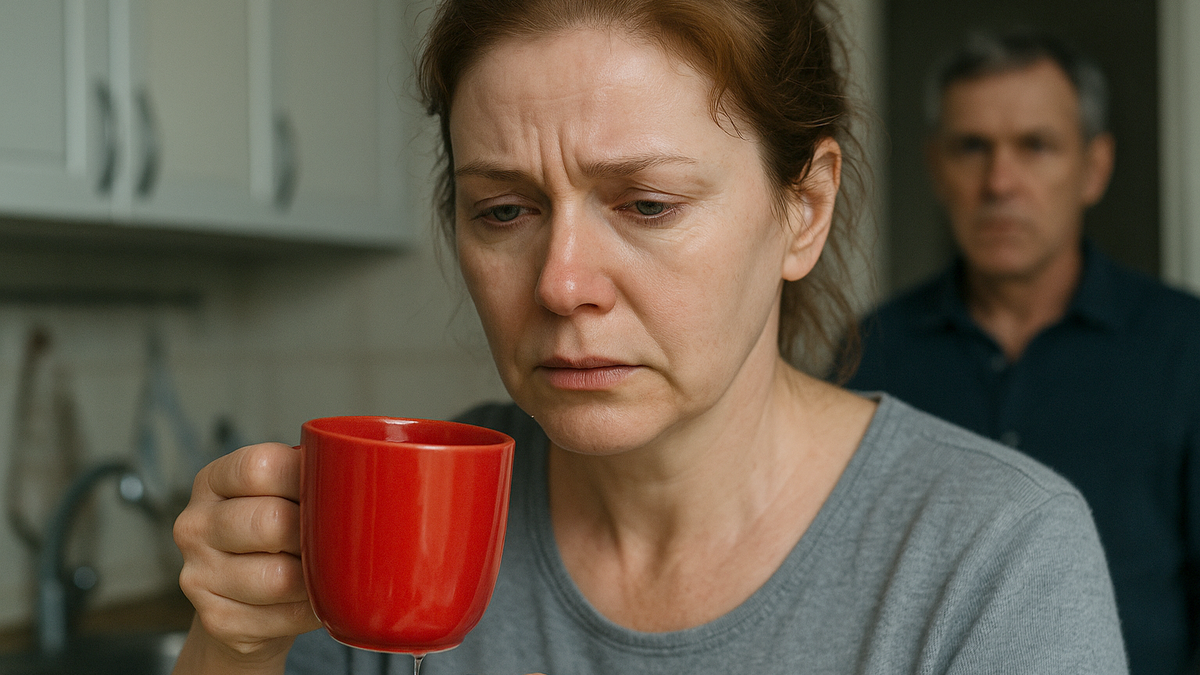 Входная дверь хлопнула — Игорь вернулся раньше обычного. Нина быстро вытерла лицо кухонным полотенцем, но глаза всё равно остались красными.