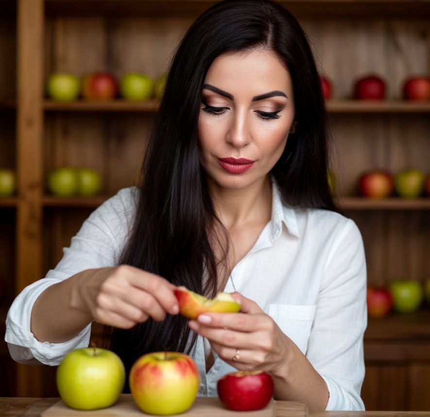 Женщина молча сняла пальто, повесила его на вешалку и прошла на кухню. Она взяла нож и миску с яблоками и присела на табуретку.
