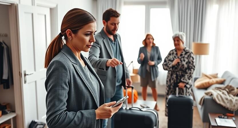 Через час Нина стояла возле входной двери. Рядом — чемодан. В квартире царил чужой гомон. На пороге — Петя с растерянным лицом и Галина Ивановна, шипящая, как змея: