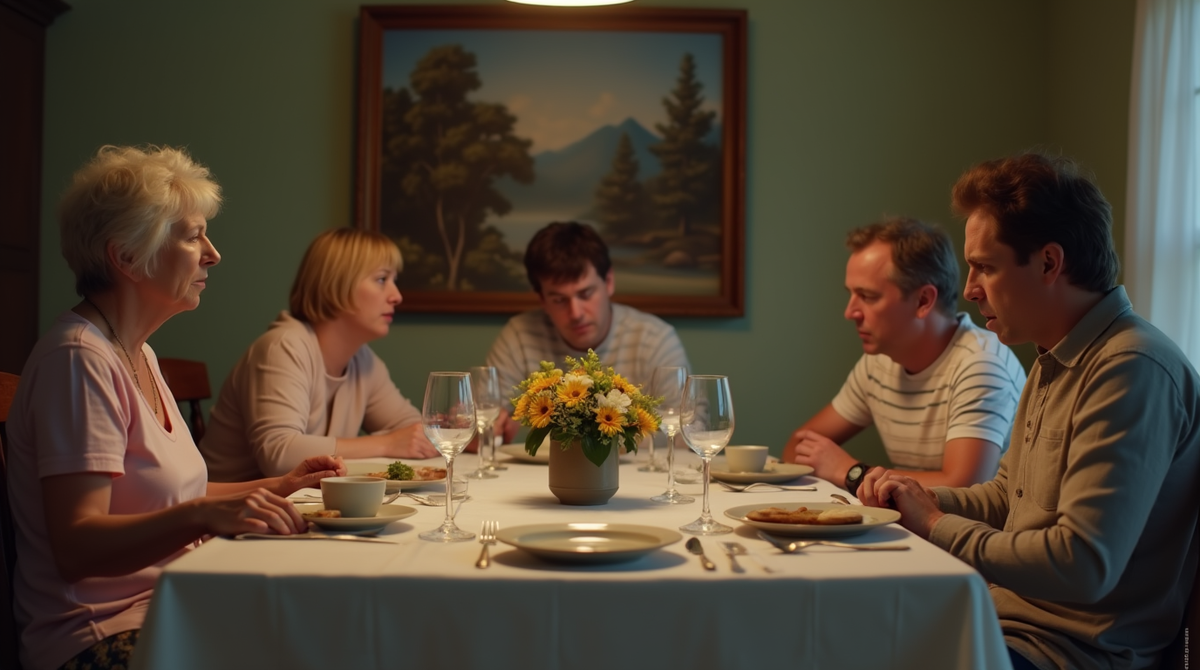 Тишина за столом стала почти осязаемой. Дядя Коля кашлянул, Артём впервые оторвался от телефона, а Саша напряжённо смотрел на жену. Тётя Света заморгала, явно не ожидавшая такого отпора.
