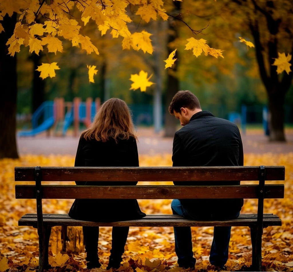 Они сидели на старой деревянной скамейке у пруда, где когда-то, кажется, в другой жизни, он признался ей в любви. Осенний ветер гнал по воде жухлые листья. Марина сидела, зарывшись пальцами в карманы пальто, ее взгляд был устремлен куда-то вдаль.