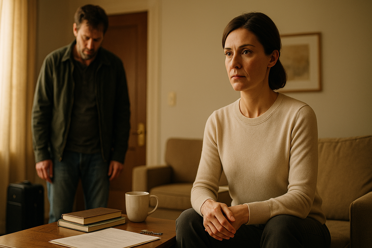 Тишина повисла в воздухе, тяжёлая и густая. Наталья смотрела на мужа и не узнавала человека, с которым прожила двадцать лет. Олег стоял с чемоданом в руке и ждал реакции. Слёз, криков, упрёков. Но Наталья молчала.