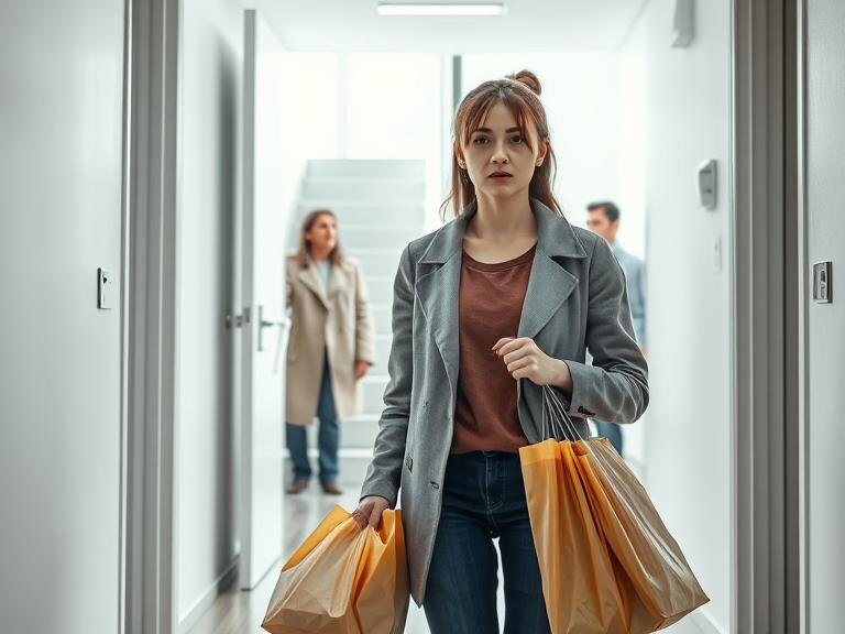 Эта фраза ударила, как пощёчина. Вика только поднялась на свой этаж, руки тряслись от усталости — тащила пакеты из «Пятёрочки», а тут на пороге вдруг вот это.