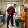 Муж сидел в гостиной, уткнувшись в телефон. На его лице читалось напряжение человека, который прекрасно слышит, что происходит, но старательно делает вид, что его это не касается.