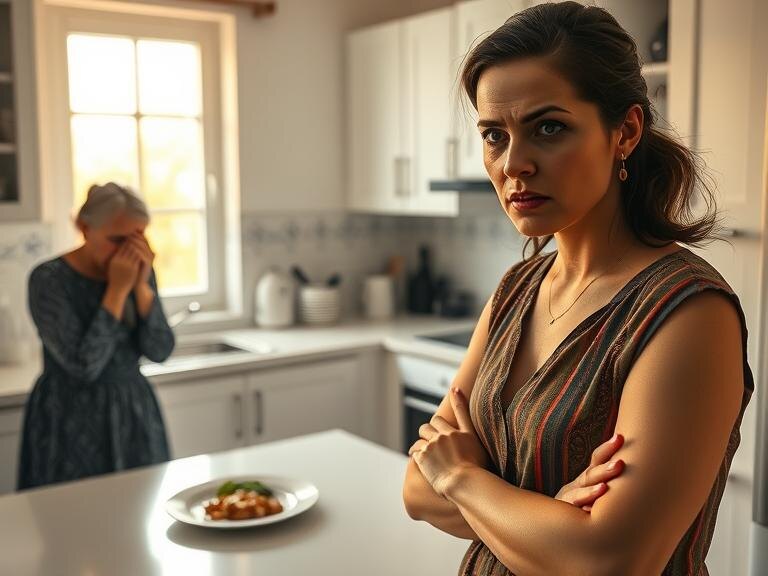 Тишина повисла густо, как пар в ванной после горячего душа. Людмила Павловна сидела за столом, подперев щеки ладонями, и мелко тряслась — то ли от слез, то ли от бессилия. На тарелке перед ней остывало мясо, не тронутое. Раиса вспомнила, как еще час назад они втроем ели и смеялись. Свекровь рассказывала анекдот про старушку с черепахой, Андрей хохотал, а Раиса откинулась на спинку стула, думая, что вечер наконец пройдет без упреков.