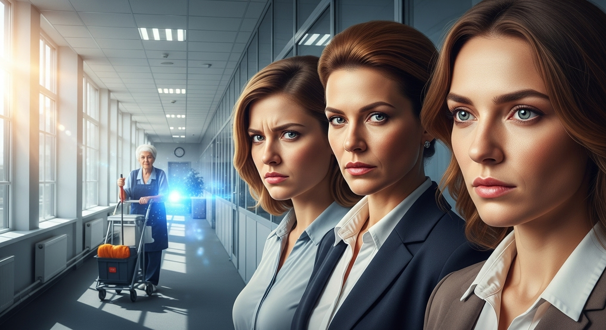 Она включила чайник и достала чашки, с удивлением заметив, что свет в коридоре включился. Странно, ведь все уже ушли. Марина выглянула и увидела пожилую женщину с тележкой, наполненной чистящими средствами — одну из уборщиц, которые обычно приходили поздно вечером, когда сотрудники уже разошлись.