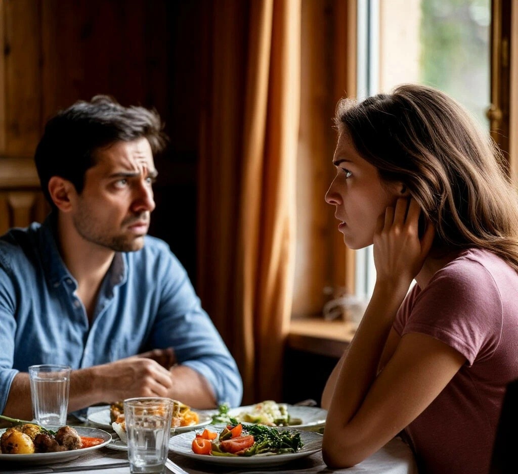 Последние слова повисли в воздухе тяжелым, давящим упреком. Алина чувствовала себя как в ловушке. Трое смотрят на нее с разными выражениями: Антон — с напускной уверенностью, свекровь — с сладкой, но железной настойчивостью, а муж — с виноватой беспомощностью. Слово «семья» прозвучало не как объединение любящих людей, а как приговор и обязательство.