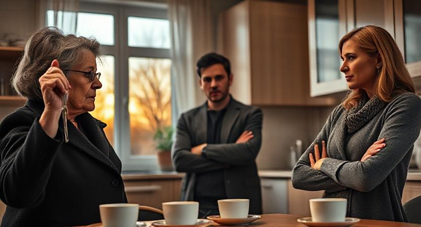 В этот момент хлопнула входная дверь. Андрей вошёл в квартиру, усталый после долгого рабочего дня. Он остановился в дверях кухни, увидев мать и жену, стоящих друг напротив друга как боксёры на ринге.