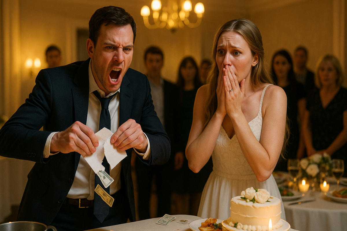 Денис разорвал конверт пополам. Бумага затрещала, гости ахнули. Купюры выпали на стол.