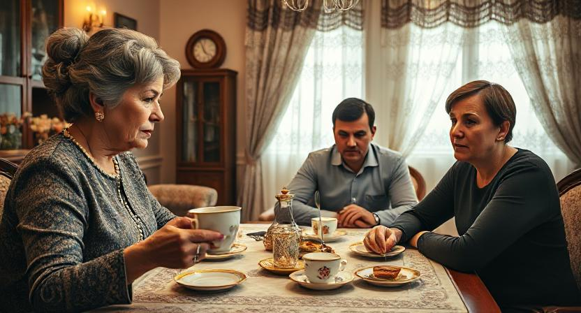 Анна застыла с кусочком торта на полпути ко рту. В гостиной повисла такая тишина, что было слышно, как тикают старинные настенные часы. Игорь сидел рядом с матерью и усиленно изучал узор на скатерти, будто видел его впервые за семь лет их брака.