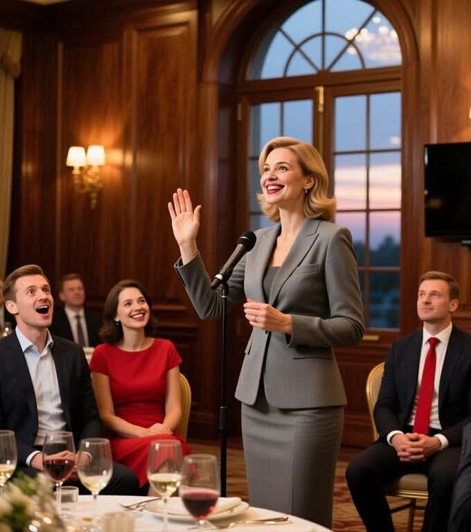 Но Максим не слушал. Он смотрел на свою жену на сцене. На элегантную, ухоженную, уверенную в себе женщину. Ту самую, которую он назвал «огородным пугалом».