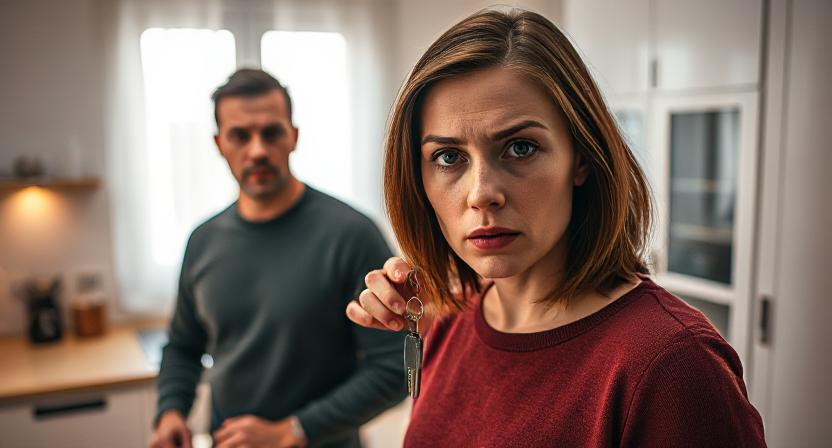 Дмитрий смотрел на ключи в её руке. Потом на её лицо. Потом снова на ключи. Это был момент выбора, и он понимал, что этот выбор определит всё их будущее.