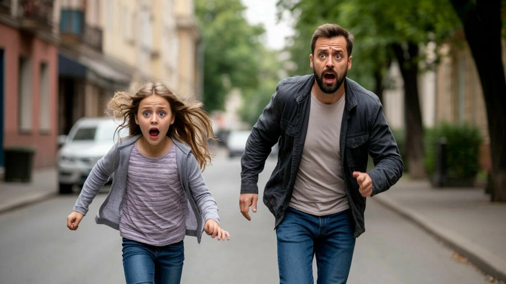 На крыльце стоял высокий мужчина в промокшем пальто, с растрёпанными волосами и тёмными кругами под глазами. За его спиной, прижавшись к ноге отца, стояла девочка лет семи — мокрая, дрожащая, с огромными испуганными глазами.