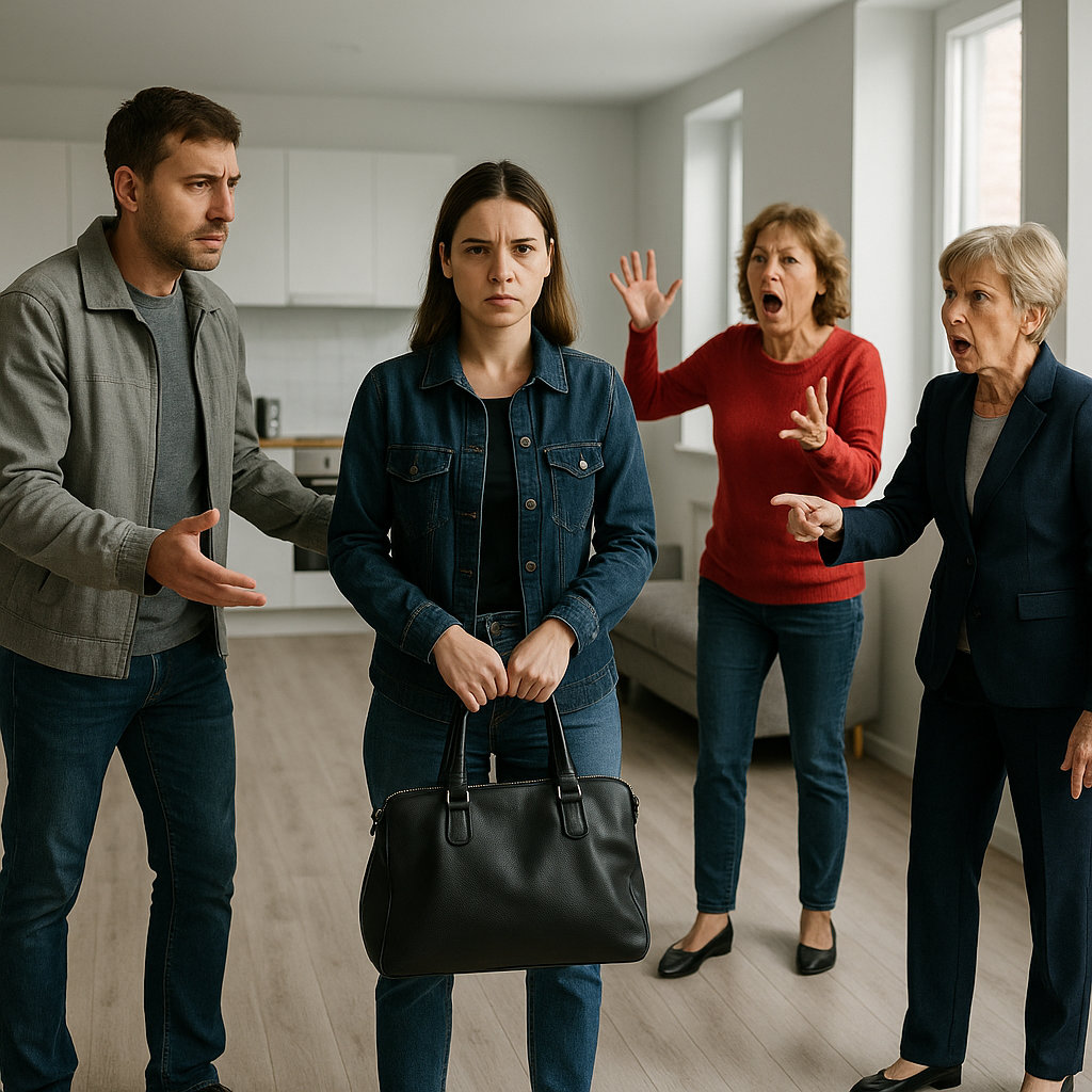 Таня открыла дверь. В прихожей столпились все трое — Денис в дорожной куртке, с сумкой в руках, Лариса в ярко-красной кофте, которая делала её лицо ещё злее, и свекровь в своём неизменном тёмно-синем костюме.