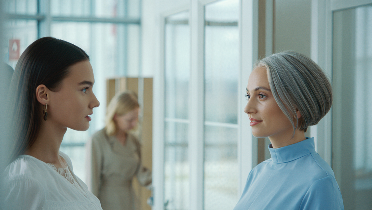 За её столом — тем самым, у окна, где всегда стояла фотография дочки Маши — сидела незнакомая девушка. Молодая, лет двадцати пяти, с ярко накрашенными губами. И в той самой голубой блузке, которую Ирина оставила в офисе на случай, если понадобится переодеться.