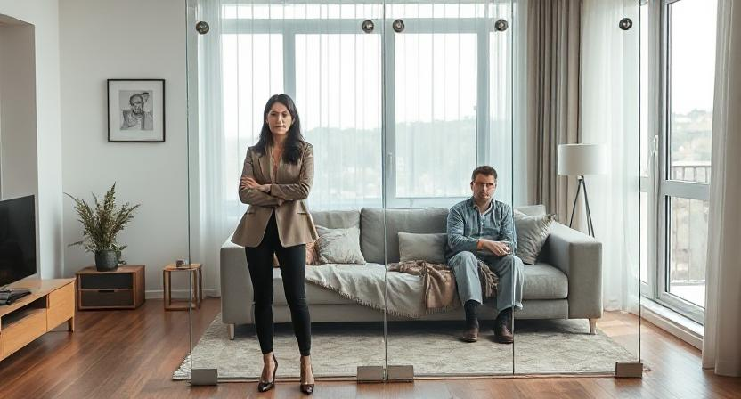 Она даже не обернулась. Продолжала прикручивать направляющие к полу. Игорь подошёл ближе и остолбенел. Она возводила перегородку. Прямо посреди гостиной. Прозрачную пластиковую стену, которая отрезала почти половину комнаты.