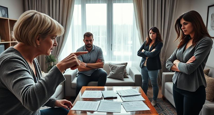 Свекровь встретила их в парадном платье, с идеальной причёской. На столе в гостиной уже стояли чашки, заварочный чайник и документы, разложенные веером.