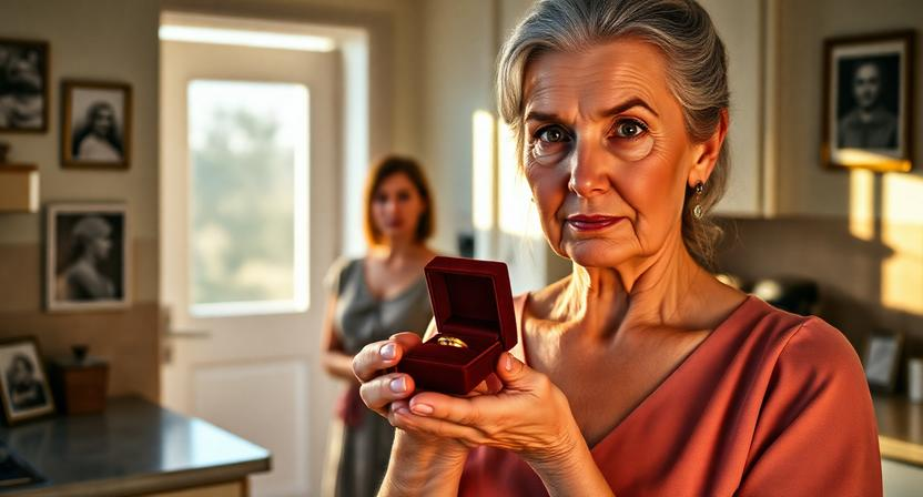 Когда дверь за ним закрылась, я вернулась на кухню. Взяла коробочку с кольцом, открыла. Кольцо лежало на бархатной подушечке, старое, потёртое, бесценное. Я надела его на палец, покрутила. Бабушка Евдокия смотрела на меня откуда-то сверху и, кажется, одобрительно кивала.