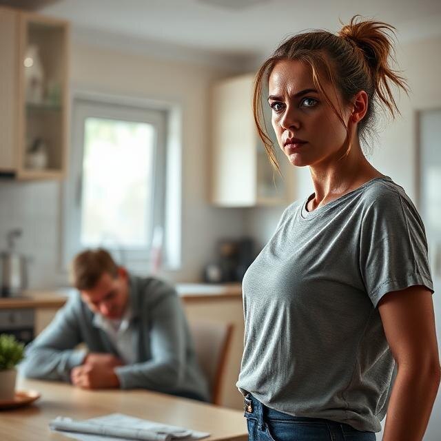 Они стояли по разные стороны пустой комнаты: Александра — собранная, с чёткими документами. Пётр — в мятой рубашке, растерянный. Он пытался улыбнуться, но улыбка получалась вялая.