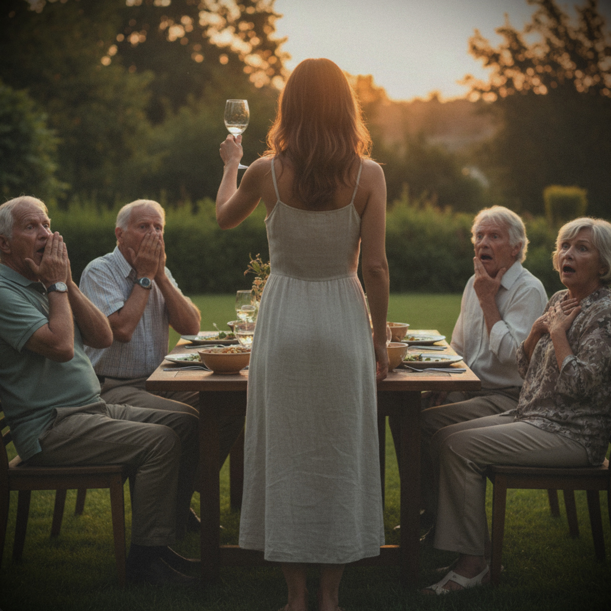 Марина медленно встала, подняла свой бокал. Голос был абсолютно спокойным, но твёрдым: