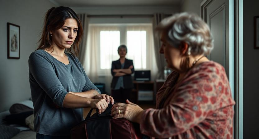 Она подошла к шкафу, достала сумку и начала складывать самое необходимое. Руки дрожали, но она заставила себя двигаться спокойно, чётко. Свекровь смотрела на неё во все глаза, не веря происходящему.