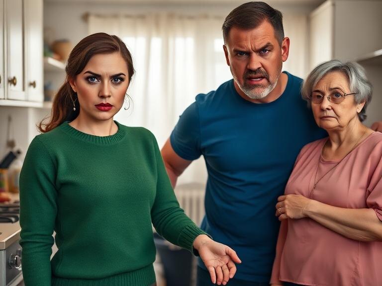 Лицо свекрови побледнело, как полотно. Пётр сделал шаг вперёд, его глаза горели недобрым огнём.