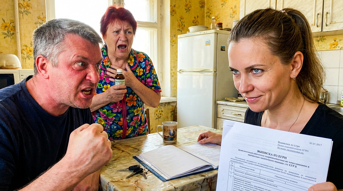 – Я не уйду! – Сергей ударил кулаком по столу. – Я здесь прописан! Ты не имеешь права меня выгнать! Я полицию вызову!