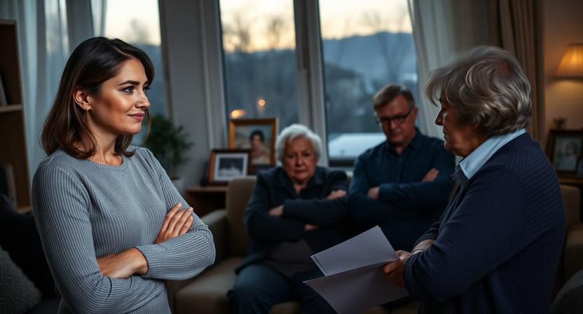 Однажды вечером Марина вернулась с работы раньше обычного. У неё разболелась голова, и начальник отпустил её пораньше. Открыв дверь, она услышала голоса из гостиной. Олег и его мать сидели за столом с какими-то бумагами.