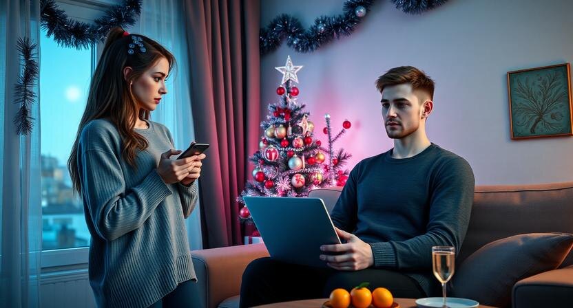 Вечером 31 декабря в квартире было тихо. Без лишнего шума, без принудительных «семейных посиделок». На столе — лёгкие закуски, мандарины, бутылка игристого. Маленькая ёлка подмигивала огоньками.