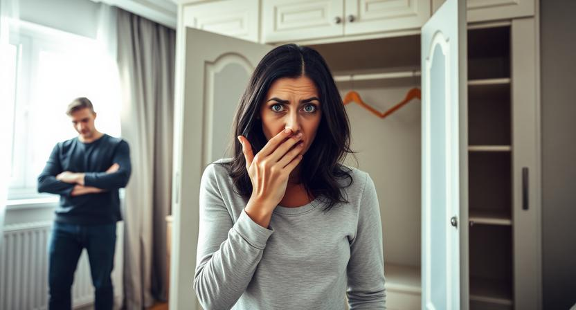 Ирина вернулась в спальню. Дмитрий побежал за ней, но было поздно. Она уже открывала его гардероб.
