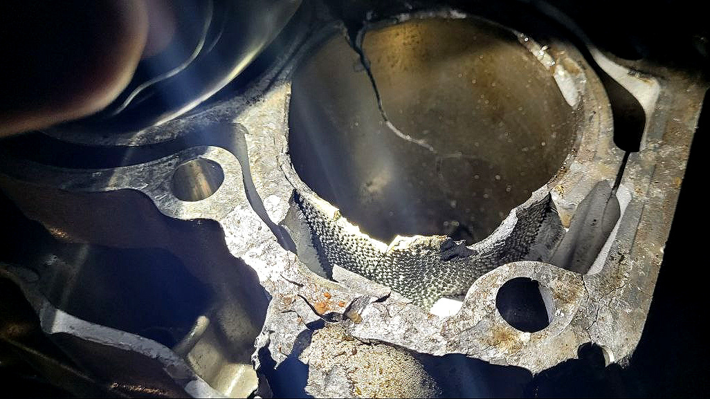 И вот такой мотор сделать уже сложно. Тут нужен новый блок, и даже новая головка, ибо ее повреждает от разрыва блока.