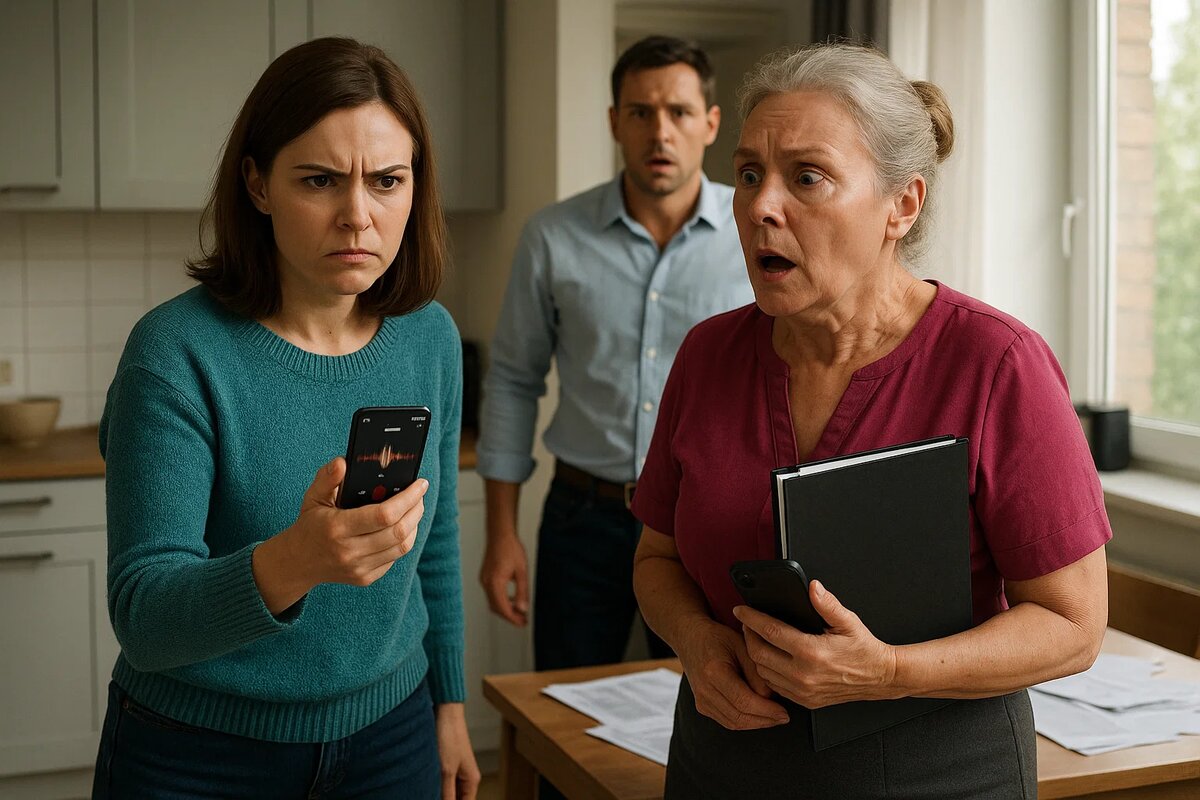 Ирина замерла в дверном проёме, держа телефон так, чтобы микрофон был направлен на свекровь.