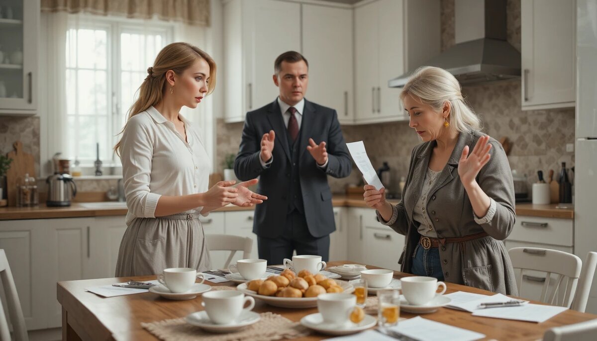 В субботу, когда они с Алексеем уже собирались на рынок за свежими овощами, раздался резкий звонок в дверь. На пороге стояла Татьяна Петровна — при полном параде: причёска, словно высеченная из камня, янтарные серьги отсвечивали зловещим огнем, а в руках – пухлая папка с документами.