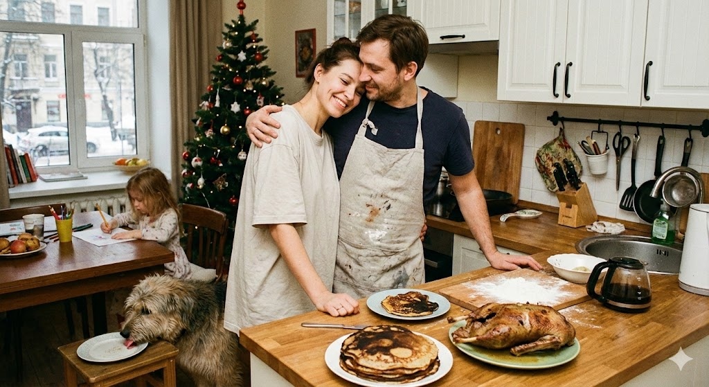 — Но это же Рождество, Артемушка, — я опустила тяжелую сумку на пол. Запах гуся предательски вырвался наружу, заполняя их стерильно-бежевый коридор ароматом чеснока и яблок. — Какой кейтеринг? Я двое суток его мариновала. И твой любимый оливье…