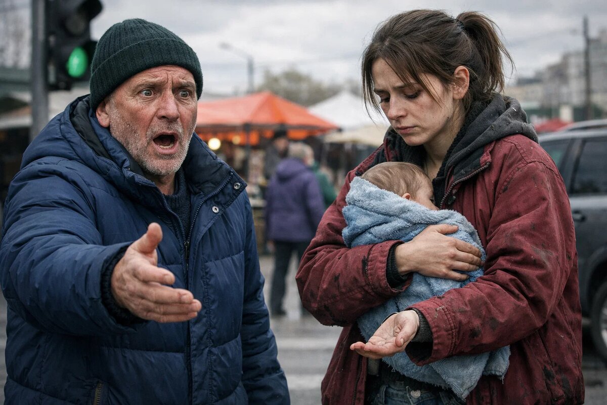 И тут увидел женщину с ребёнком. Она стояла у перехода, протягивала руку прохожим. Лицо серое, волосы свалялись, на ней куртка явно с чужого плеча. Прижимала к себе малого в грязном одеяле.