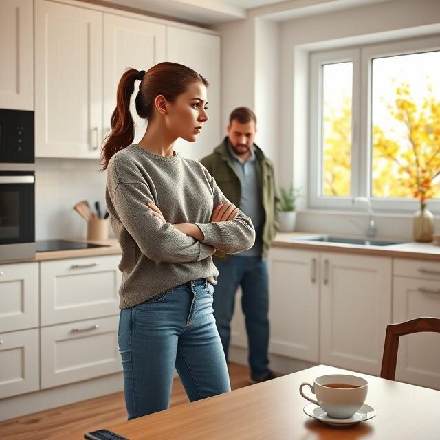 Молчание в комнате висело, как густой туман. Тиканье часов звучало слишком громко, будто подчеркивало каждое неловкое дыхание и тишину, которая уже начала резать глаза. Трое: мама, сын и невестка — все застыли в этой паузе, словно время застыло на грани взрыва.