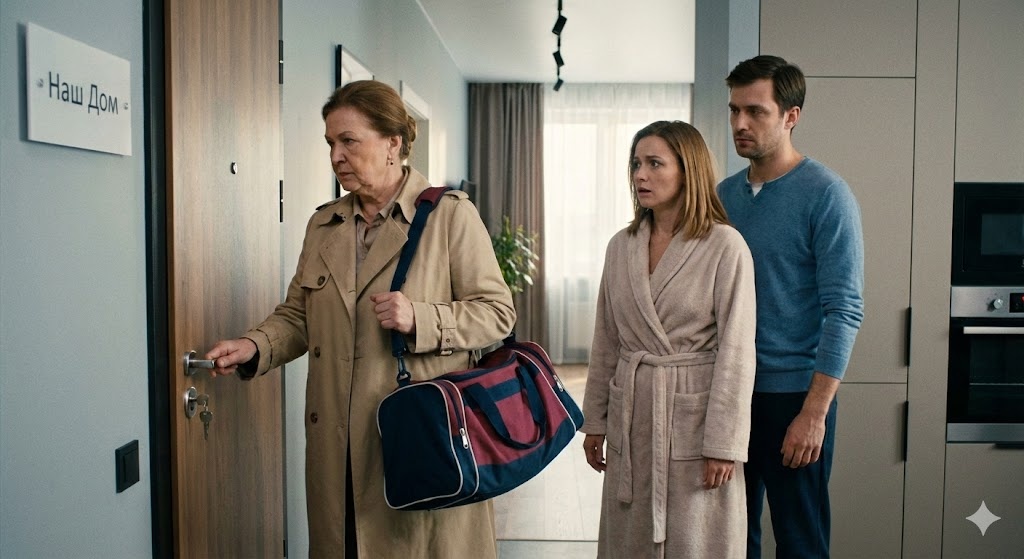 Она выглядел так, будто собралась в дальнюю экспедицию. Бежевый плащ, застегнутый на все пуговицы, несмотря на теплую погоду. Идеально уложенный седой пучок, ни один волосок не выбивается. А у её ног, на дорогом итальянском керамограните прихожей, стояла огромная, раздутая спортивная сумка и два пластиковых пакета из супермаркета.