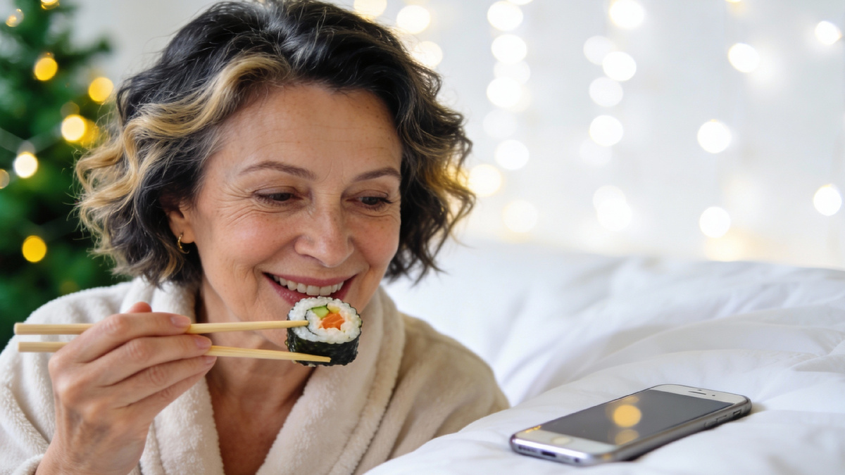 — …то зачем нам вообще тащиться по пробкам? Чтобы посидеть у твоей кровати и поесть суши из коробок? Это не праздник, мамуль. Это лазарет какой-то.