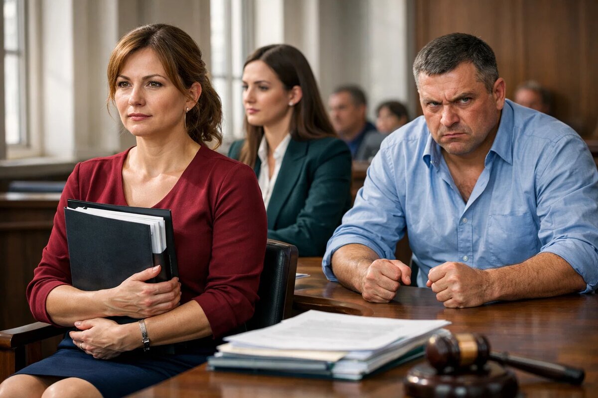 Через несколько дней Григорий сидел в зале суда и смотрел в пол. Он пришёл один, без адвоката, в мятой рубашке, и всем своим видом показывал, что жизнь с ним обошлась несправедливо. Ирина сидела напротив — спина прямая, взгляд спокойный. Рядом с ней — адвокат, молодая женщина с папкой документов.