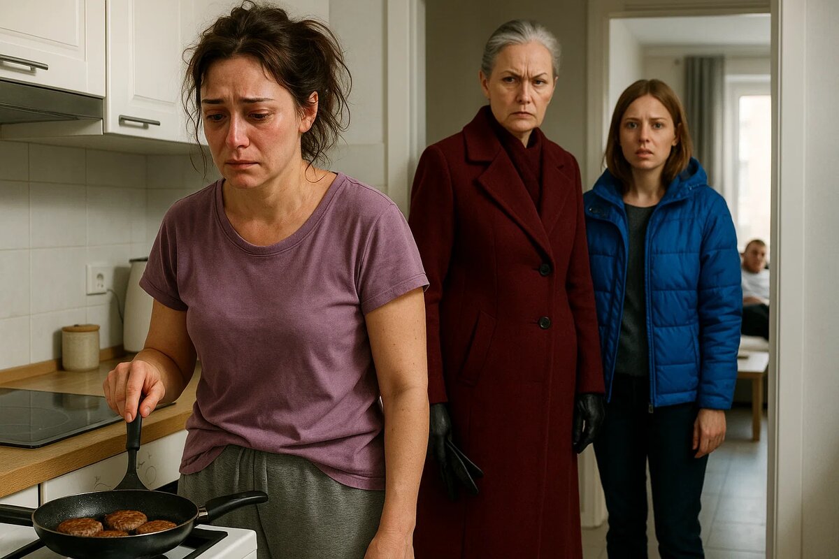 Виктория Петровна шагнула в прихожую и остановилась. Элла стояла у плиты в домашних штанах и застиранной футболке, с красными глазами. Сковородка дымилась.