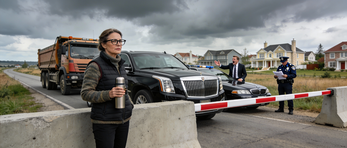 — Это что за цирк?! — заорал он, подбегая к шлагбауму. — Уберите блоки! Я сейчас полицию вызову! Я вас всех посажу!