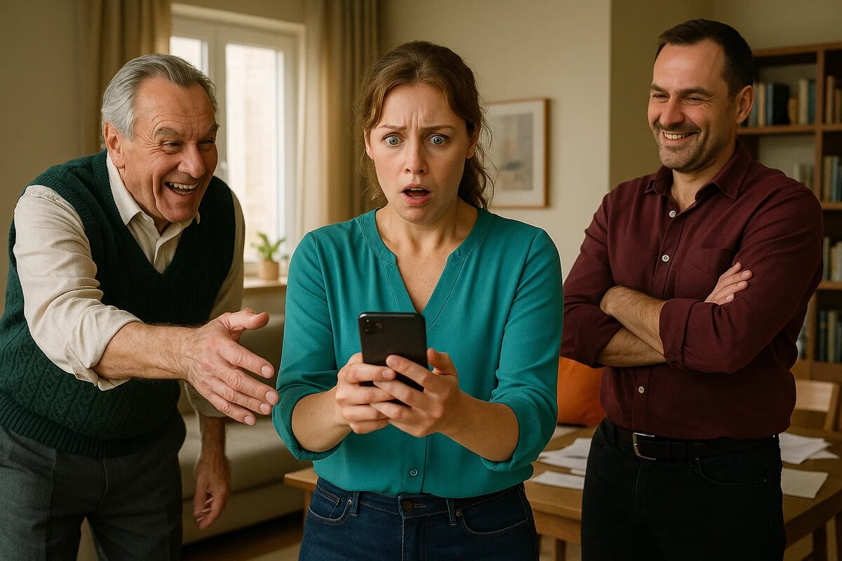 Анна открыла дверь и сразу поняла — что-то не так. Из гостиной доносились голоса — громкие, возбуждённые. Она сбросила туфли, не успев повесить пальто. В дверях стояли муж Олег и свёкор Борис Петрович, оба с красными лицами.