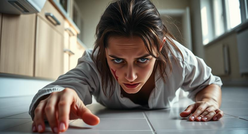 Аптечка висела высоко. Она встала на цыпочки, потянулась — и тут же пол ушёл из-под ног. Света рухнула, больно ударившись плечом об угол шкафа.