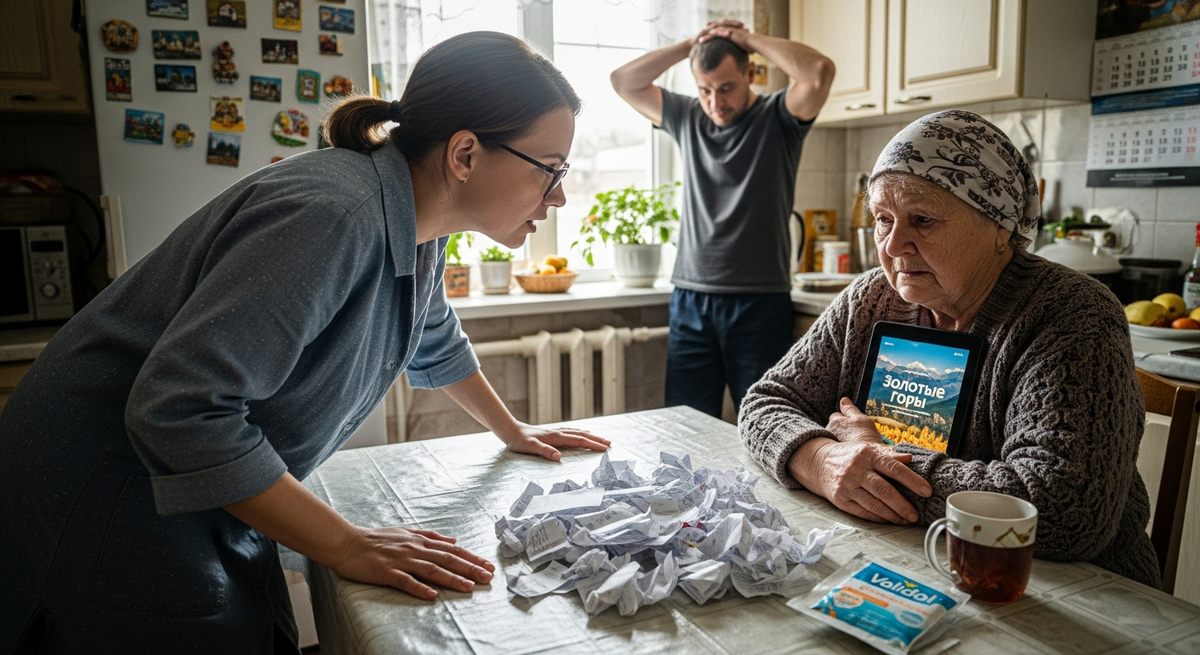 — Вы со Стасиком так ругались из-за денег… — начала свекровь, вытирая нос платком. — Ты сапоги не купила, Стас на резину копил, а пришлось за страховку отдать. У меня сердце кровью обливалось! Я увидела рекламу. Там женщина, пенсионерка, как я, рассказывала, что вложила пенсию и внуку квартиру купила. Я позвонила, Артем, куратор мой, сказал: «Нина Андреевна, сейчас уникальное окно возможностей».