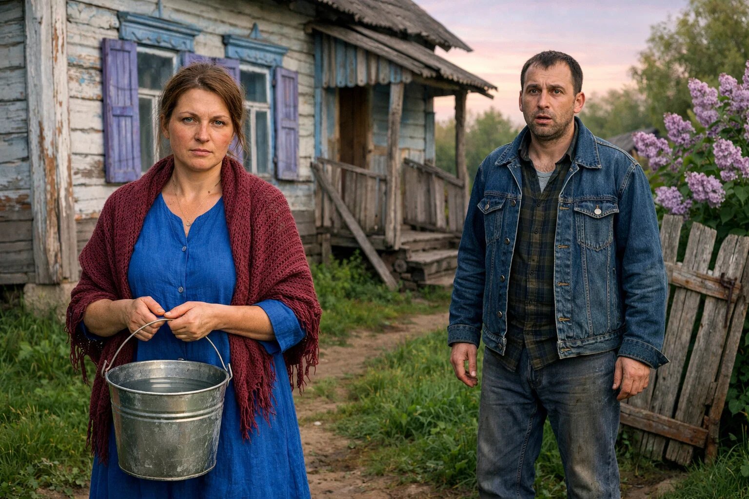 Родной дом встретил перекошенной калиткой и облупленными ставнями. У крыльца стояла женщина лет сорока в сером платье, с ведром в руках. Смотрела на него спокойно, без удивления.