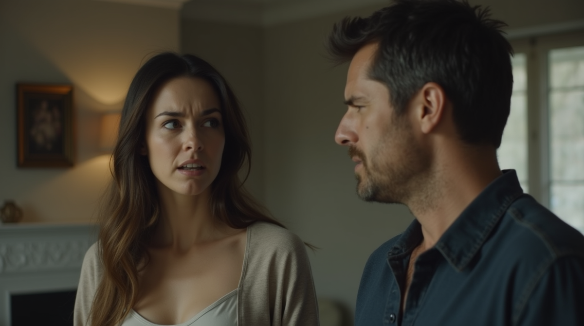 Дмитрий подошёл ближе, хотел обнять жену, но она слегка отстранилась, скрестив руки на груди. Он остановился, глядя на неё с виноватым выражением.