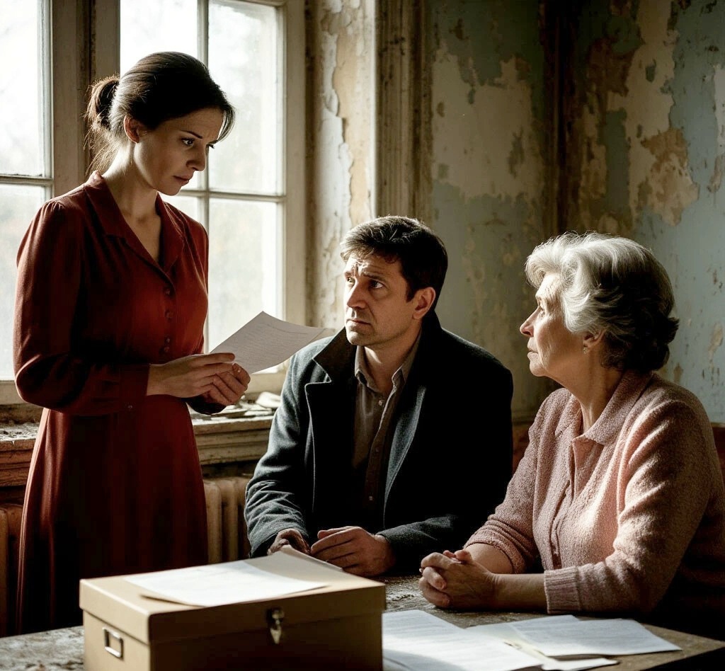 — Документы на столе, — сказала она, кивнув в сторону старого письменного стола, где лежала папка. Максим тут же подошел, начал листать.