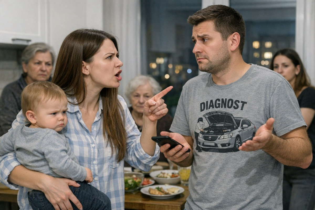 Полина молча протянула телефон мужу. Денис слушал, кивал, потом сказал: